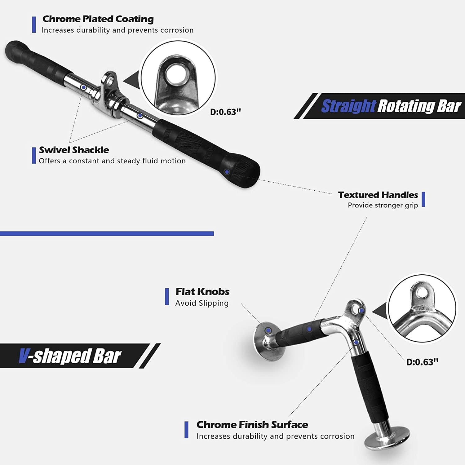 Rotating Straight Bar: designed with non-slip handle to increase your potential effect and prevent accidental sliding while exercising