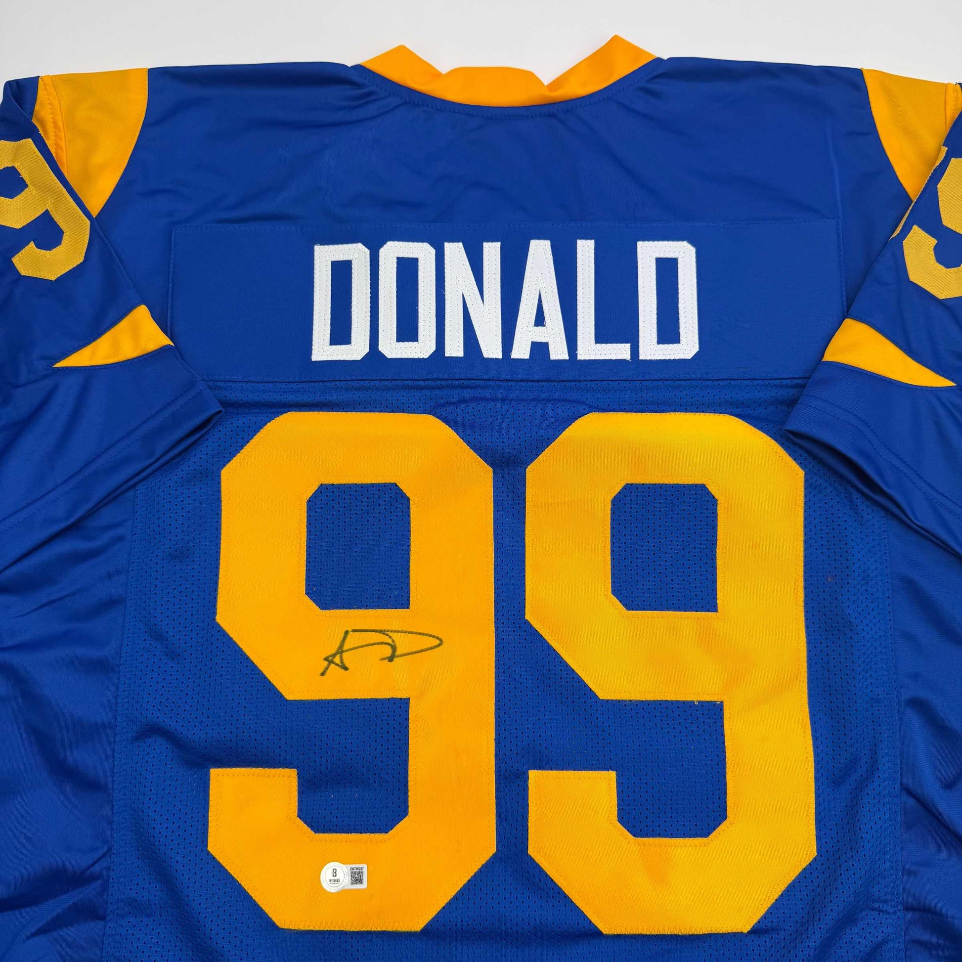 Own a piece of football legend with this autographed Aaron Donald Los Angeles Rams retro blue jersey. Certified authentic by Beckett BAS, this striking piece combines vintage style with the raw power of one of the NFL’s fiercest defenders. Perfect for collectors or fans ready to showcase their bold allegiance to Rams greatness.