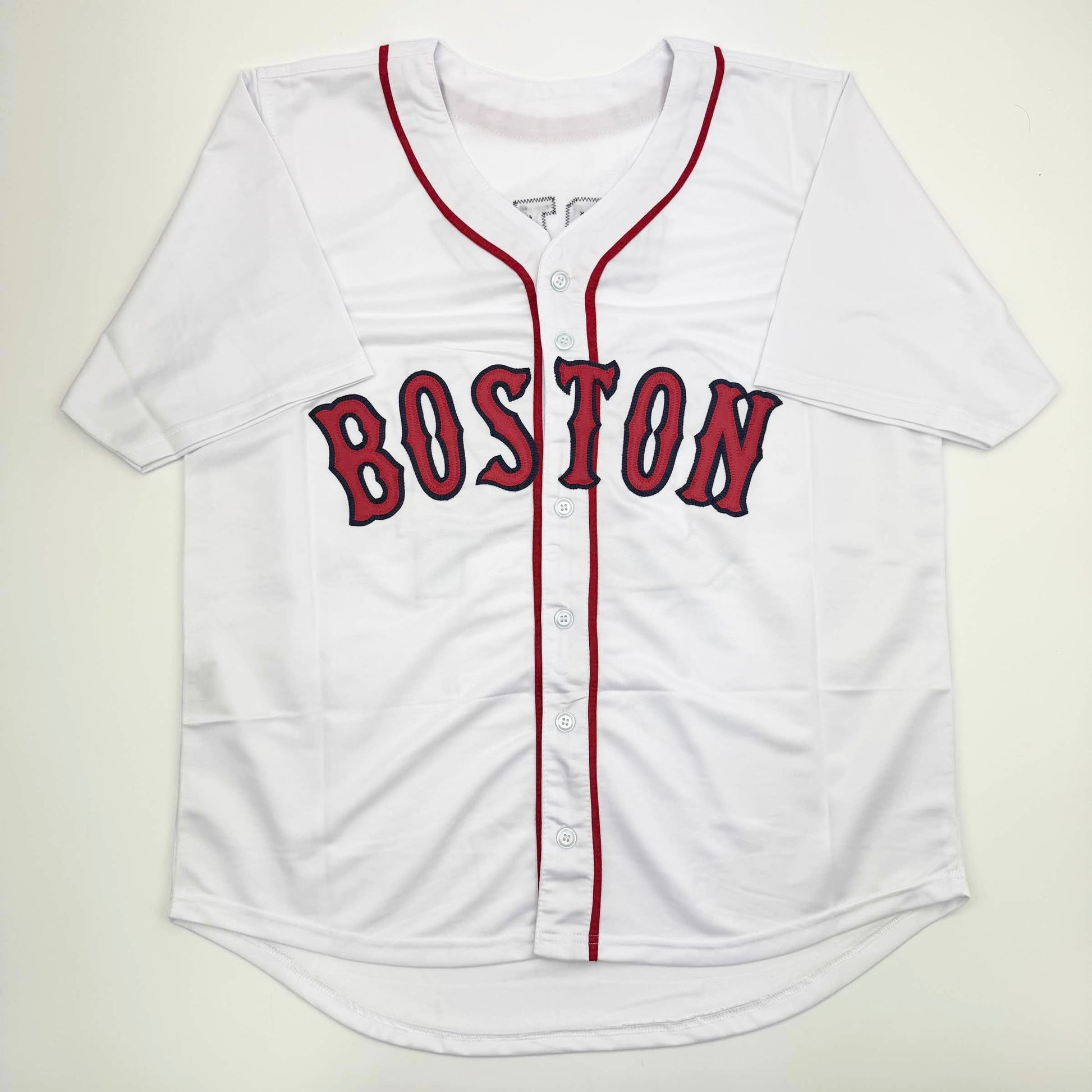 Jersey has no brand names or logos. This is a custom jersey and was not manufactured by or in any manner associated with any professional sports league or manufacturer. This custom jersey carries no professional sports league designation. The item is intended to be an autographed collectible. The custom jersey displays the name and number of the player. This item in no way is affiliated with or connected to any professional sports organization. Size is XL.