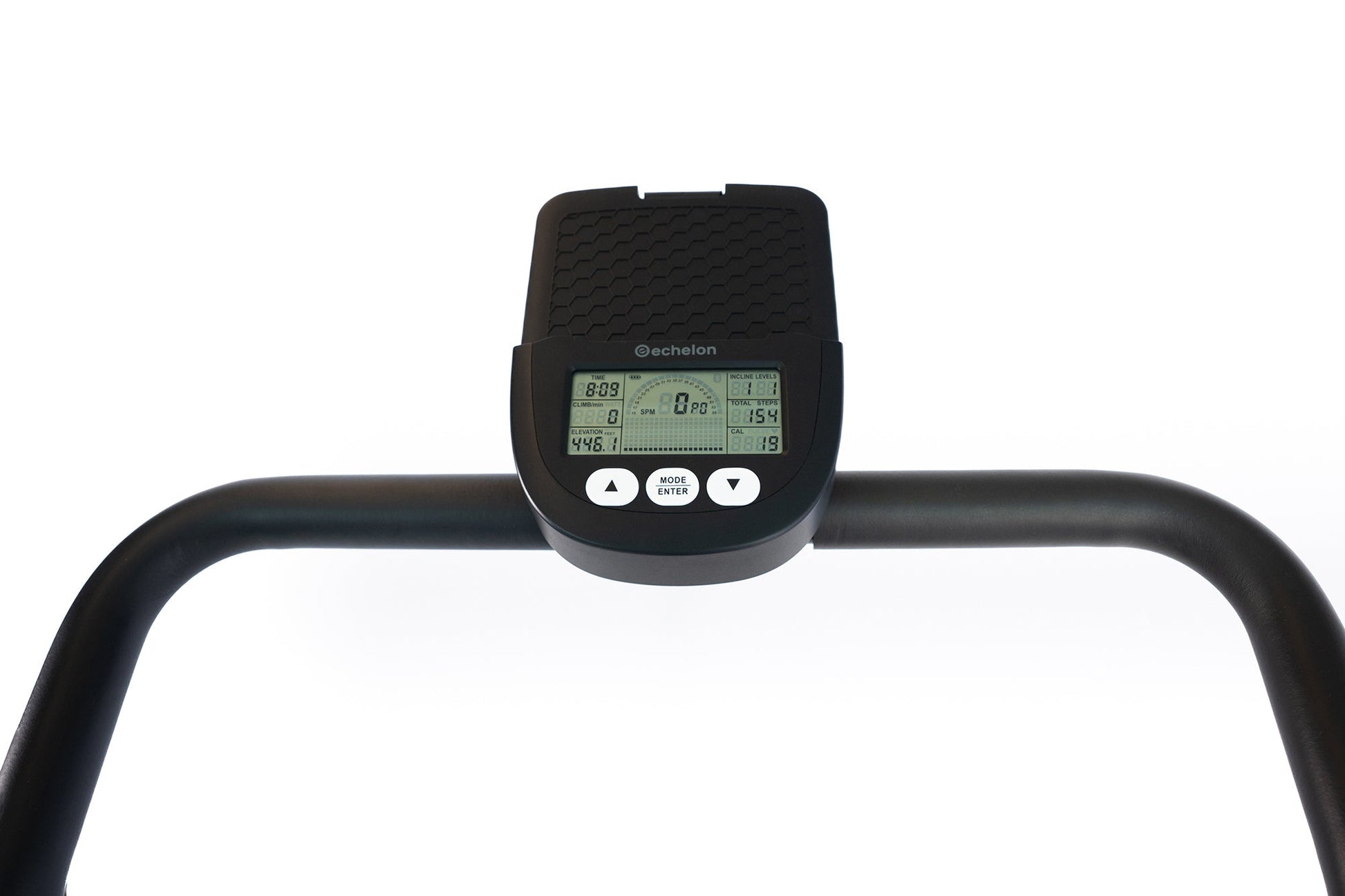 | Push your limits with the Echelon Stair Climber MAX, featuring a new RPM output display, 32 levels of digital resistance, and adjustable handlebars for targeted training. Easily connect your smart device to the Echelon Fit® App using the LCD display with extendable clamp. With a low 11” height, it’s compact, powerful, and easy to store. | Regular price