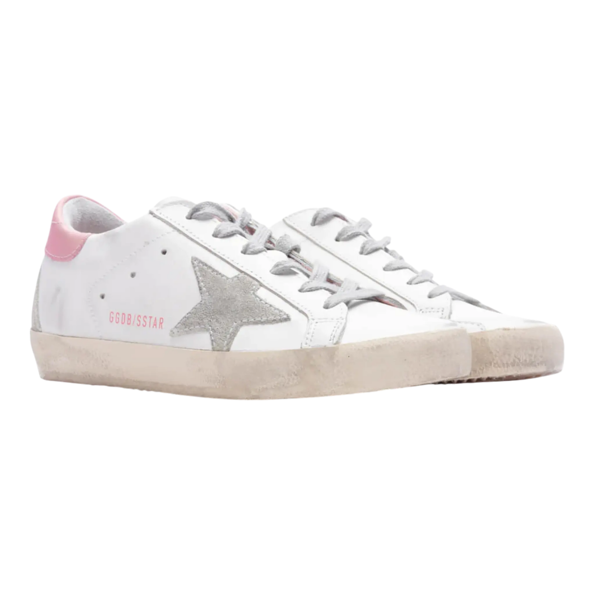 Elevate every day with Golden Goose Super-Star Women Sneakers, crafted in premium white leather with a gray suede star and cream sole for luxury style and effortless comfort. These iconic low tops pair distinctive details with versatile wear for any casual or dressed-up look.