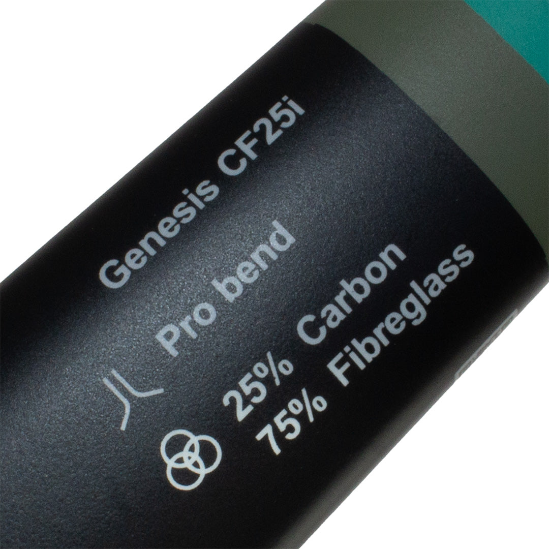 The highest specification carbon indoor stick in the Genesis range, combining a 25% carbon lay-up over a fiberglass skeleton. The Genesis CF25 features a PRO low bend to aid dragflicking and powerful push passing, but without the aggression of the Ultimate (extreme) low bend. The high levels of fiberglass give good touch and ease control.