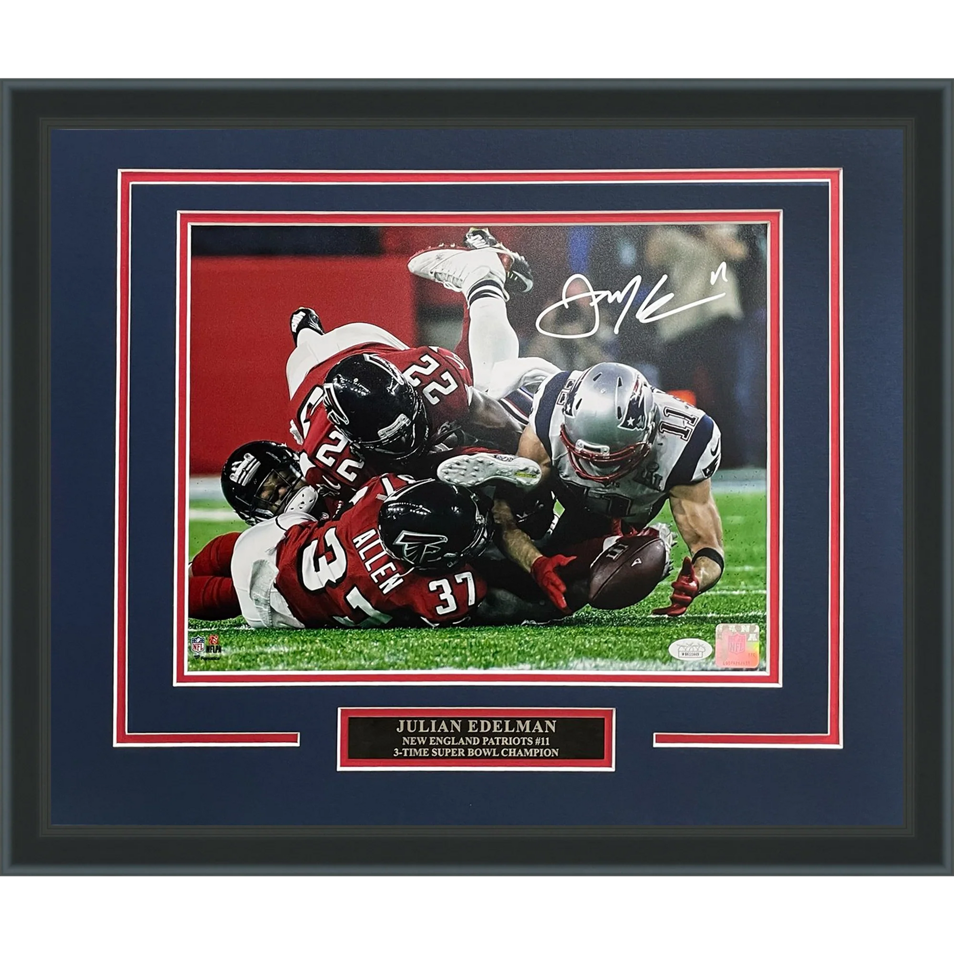 Julian Edelman Autographed New England Patriots (SB LI Catch) Deluxe Framed 11x14 Photo - JSA
