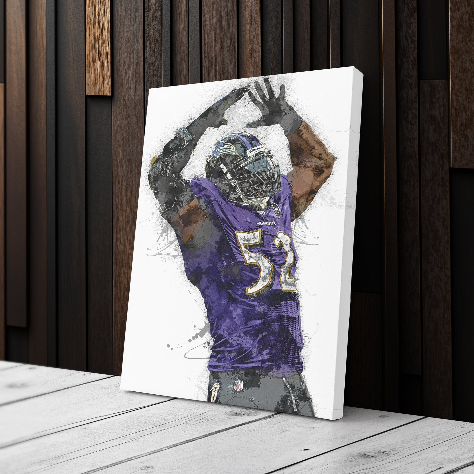 This premium-quality canvas captures Ray in a signature moment — leading the pregame dance, delivering a powerful hit, or celebrating a key defensive stand — framed in the Ravens’ iconic purple, black, and gold. Whether displayed in a sports-themed room, fan cave, or office, this piece brings pride, motivation, and Ravens tradition to your décor.